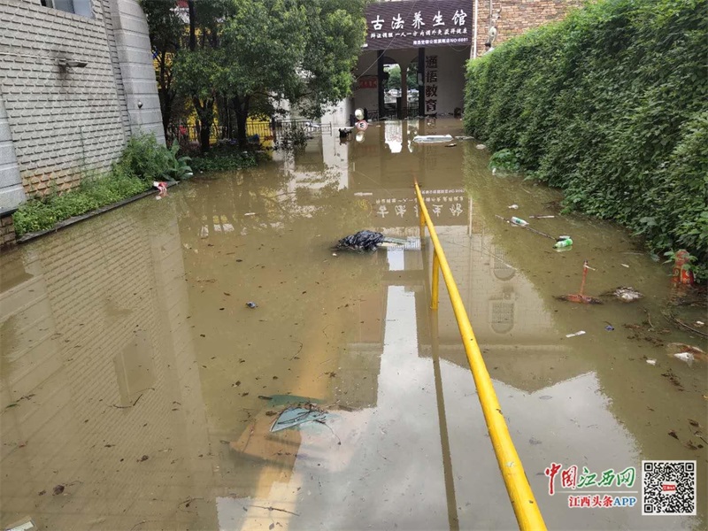 在现场,记者看到,车库进出口已完全被水淹没,车库内水位与红谷滩景观河水位持平,在可见的范围内,有多辆车被浸泡,只留部分车顶或车尾在水面。连接景观河的一侧,依稀可见水下有封堵沙袋。