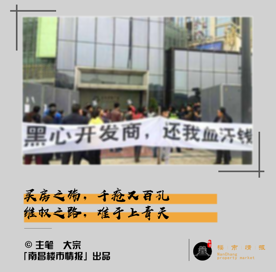 在这里,不禁心疼起那些在南昌赚着辛苦钱才勉强买下一套刚需的人,本想着终于安定下来了,殊不知等待自己的却是无穷无尽的维权。