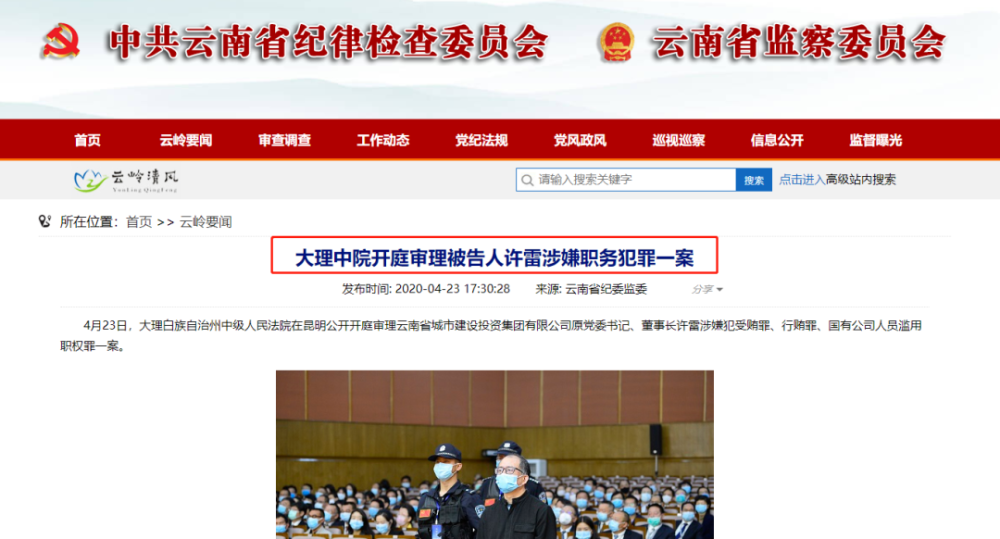 这不禁让我想到当时发生的另一个“瓜”,2019年5月末,云南城投原董事长许雷因行贿受贿主动投案。