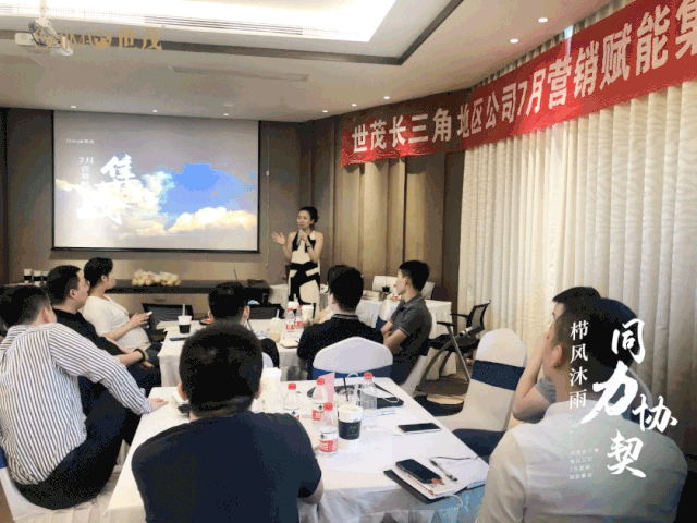 长三角世茂以月为单位,开展多次涵括复盘工作、交流研讨、职能培训等内容在内的集训会议,旨在提升团队向心力与创造力。在近期举行的7月营销赋能会中,更以“共创”为主题,对各地项目开盘前营销、企划、渠道等的标准动作做梳理与总结,为下一阶段的团队工作拓展思路,明确目标。