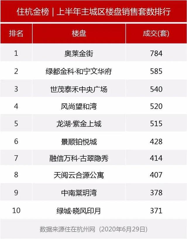 ▶ 住杭金榜上半年主城区楼盘销售套数排行TOP3(数据来源住杭金榜)