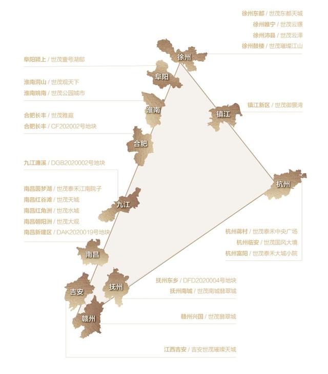 2020年作为长三角世茂立足泛长三角城市群的起点,以前瞻性的判断力和强而有力的执行力积极扩展城市版图。目前已拥有土地储备约达159.95万平方米,仅在半年内新增土地14幅,新增储备货值约144亿,包括新入驻城市合肥、阜阳、赣州、九江、抚州等重要城市,完成跨越4省11城的全面布局。