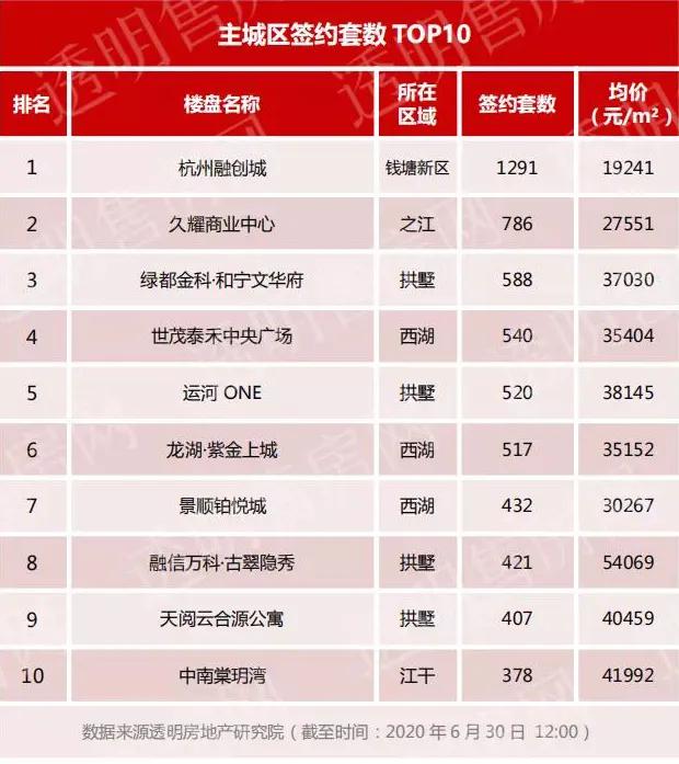 ▶ 杭州楼市2020年上半年成交排行榜主城区签约套数TOP4