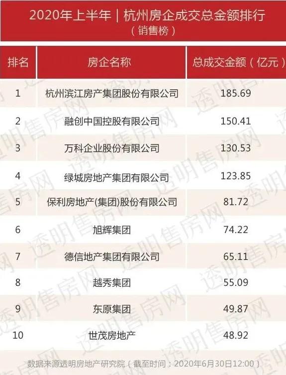 ▶ 荣登2020半年度杭州房企成交总金额TOP10