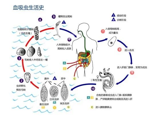 6.出现症状及时就诊。接触疫水后如出现发热、腹泻、乏力等症状,要尽快寻求医生帮助,主动告知医生近期曾在血吸虫病流行区接触过疫水,尽早诊断和治疗。