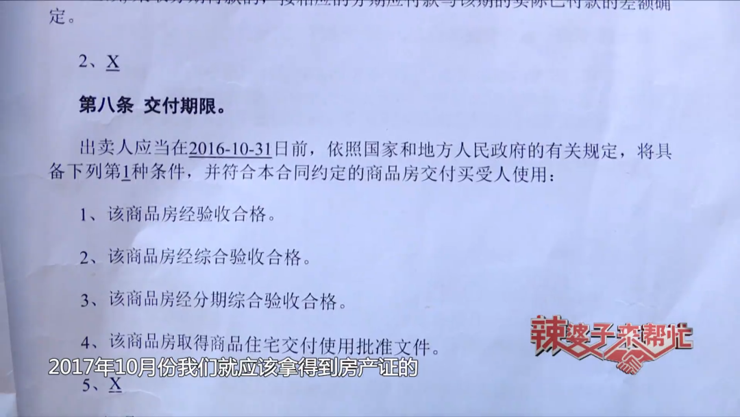 求助人李女士:花了81万,本来按照时间算的话,合同上写的是应该是2017年10月份我们就应该拿得到房产证的。因为没有房产证,小孩子也上不了学,现在我们也特别着急,特别焦虑。