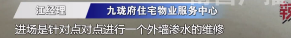 这位工作人员表示,小区物业多项工作都是进行外包,自己只是负责自己工作区域的事情,对物业管理及维修并不知情,那么,物业对业主反映的诉求又是什么态度呢?当记者想要进一步沟通时,九珑府物业前台以负责人都以去开会为由,不予以任何答复,随后,记者在现场等待了半个小时后,九珑府小区物业江经理终于出面了。