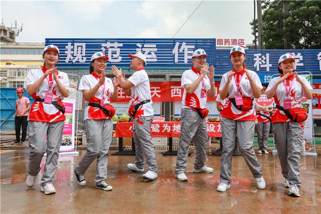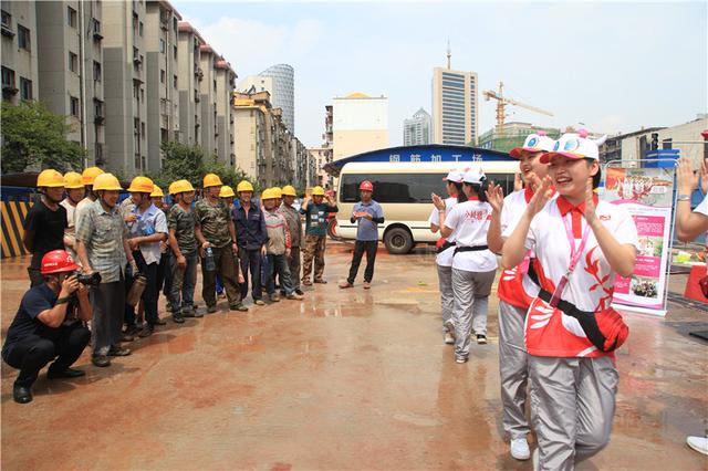 进入7份以来,江西省内天气气温持续攀升,素有“火炉”之称的南昌更是酷热难耐,城区气温异常炎热,日均气温达到37摄氏度,地表温度已达47摄氏度左右。上午11时许,南昌轨道交通集团有限公司小鲜鹭志愿者一行来到丁公路南站,此时恰逢正在进行车站主体结构施工的工人从基坑内走出来,小鲜鹭志愿者们跳起欢快的舞蹈,迎接建设者们下班。