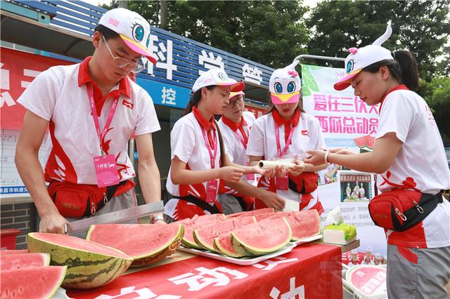 “大哥、大姐,你们辛苦了,我们来为你们送西瓜来了!”一句句温暖人心的问候、一块块新鲜红嫩的西瓜,顿时让刚从车站基坑里出来的地铁建设者们心里乐开了花。