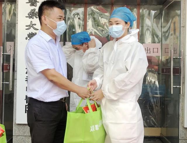 慰问时,院领导为正在坚守岗位的专班值守人员,送上一袋袋装有绿豆、冰糖、莲子、银耳等物品的清凉解暑礼包,并关切询问了他们的工作情况,了解了他们的身体健康状况。院领导感佩大家克服高温天气,身穿防护服坚守一线防疫的敬业精神;叮嘱大家时刻提高防护意识,注意防暑降温;强调疫情尚未结束,大家须一如既往做好体温检测、轨迹查询等防疫工作,坚决守住医院防疫的第一道"门"!
