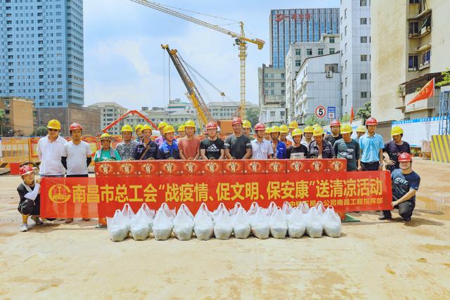 此次南昌市总工会开展2020年"战疫情、促文明、保安康"送清凉活动,为五局一线300多名地铁建设者送来了加多宝、绿豆等防暑降温食品,进一步鼓舞了广大地铁建设者士气。大家纷纷表示:在接下来的工作中要乘势而上,继续保持大干热情,积极为南昌地铁建设作出更多更大贡献。(叶昌文 张庆)