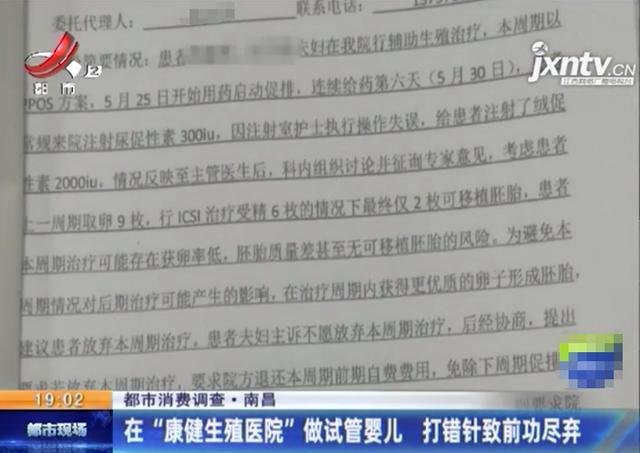 南昌的王先生(化名)和妻子说,他们在“康健生殖医院”做试管婴儿时,竟然被医院的护士打错了针。这是怎么回事呢?