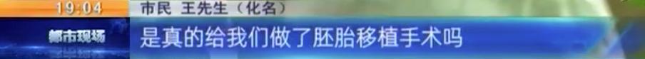 王先生:“去年5月16号的时候,医院给我们做了一次胚胎移植,移植了2枚,但是没有成功,后来又告诉我们还有2枚可移植的胚胎,让我们进行了相应的移植胚胎缴费,在去年6月21号,又重新给我们做了相应的胚胎移植。”