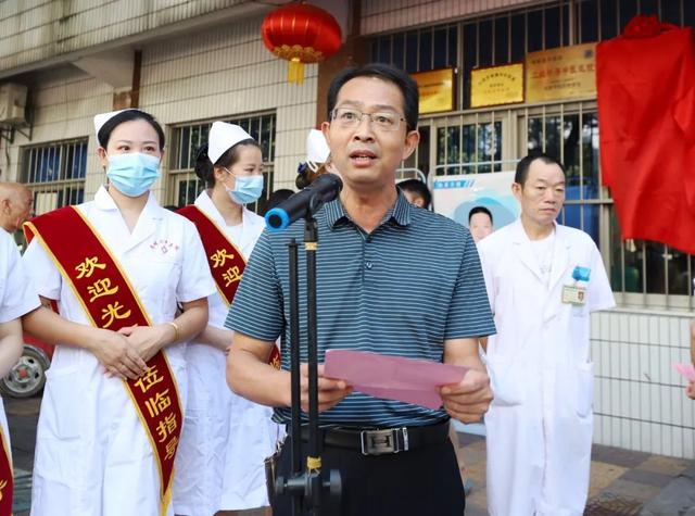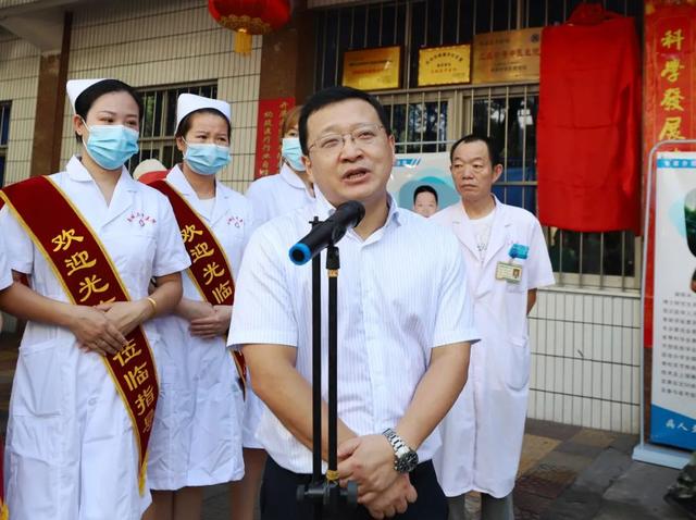 江西消费网讯 8月4日上午,南昌市洪都中医院副院长范少勇率骨伤科、针灸科、护理部、制剂中心等科室负责人、医疗专家一行9人赴南城县中医院开展大型义诊活动,并在南城县中医院举行江西省中医骨伤专科联盟博士工作室揭牌仪式。南城县卫健委党委书记、主任吴毛仔参加揭牌仪式,南城县中医院院长周家麟致欢迎辞。