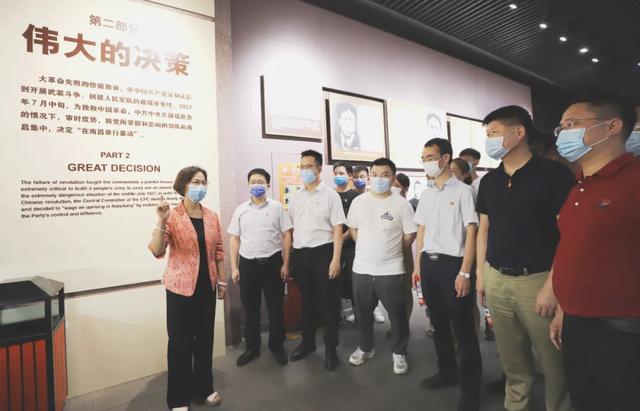 参观过程中,刘建芳还向支部党员深入讲解了八一起义的历史脉络和八一背后的故事;带领大家观赏老一辈无产阶级革命家的题词;参观馆内珍贵的历史照片、文物、艺术品等。馆中每一张图片,每一个文字都散发着革命先烈艰苦卓绝奋斗、英勇无畏牺牲的磅礴气概。