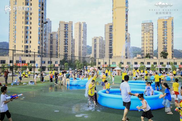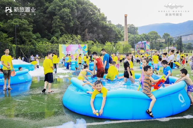 大朋友,小朋友,一头扎进水池,拿起水枪、水盆等一切能用上的器具,来了一场妙趣横生的水上大作战。