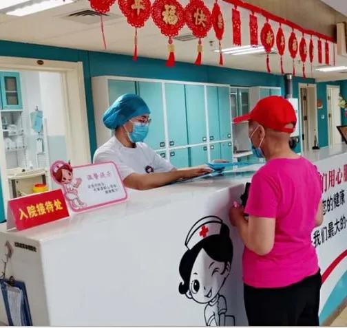 “您好,阿姨!请问您是办理住院的吗?”接待处护士一句热情洋溢的开场白,使新入院的患者一进乳腺一科就感受到了医护人员的亲切。温馨整洁的病区,热情礼貌的工作人员,是入院病人对科室的第一印象。