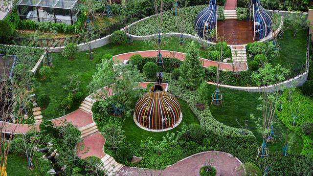 世茂生活研究中心通过对社区空间的精细化设计,充分发挥其调节情绪的功能,通过对架空层、分区景观空间的巧妙围合、芳香植物的添加、光影变化的构建,来打造静谧的社区港湾。每一处绿色都经过精心的设计,让漫步在社区走入其中的“Z世代”亦可享受来自大自然的宁静与治愈功能。