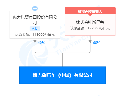 天眼查资料显示,斯巴鲁汽车(中国)有限公司由斯巴鲁株式会社和庞大汽贸集团股份有限公司共同出资成立。天眼查的数据和斯巴鲁官方完整的资料显示,庞大汽贸集团股份有限公司实际承担斯巴鲁在中国市场的汽车销售、进出口、仓储、物流等业务。