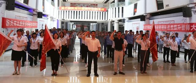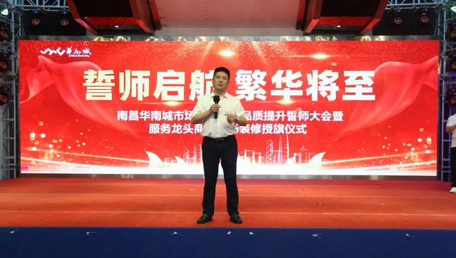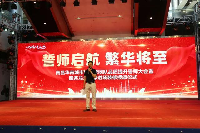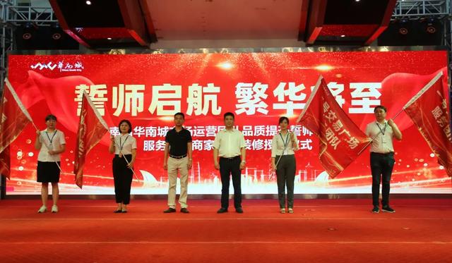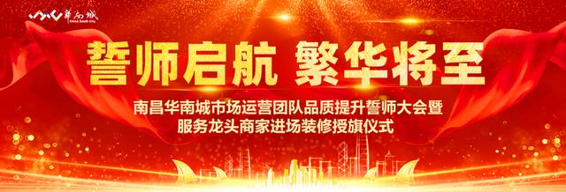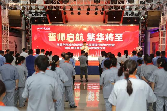 为了能更好的服务龙头商家进场装修,提升整体服务品质。8月25日上午,在南昌华南城二号交易广场中庭成功举办了“誓师启航 繁华将至——南昌华南城市场运营团队品质提升誓师大会暨服务龙头商家进场装修授旗仪式”。