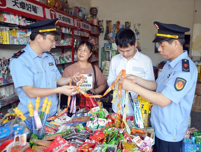 图为8月28日该县部门联合执法人员正在一乡镇校园周边检查食品。