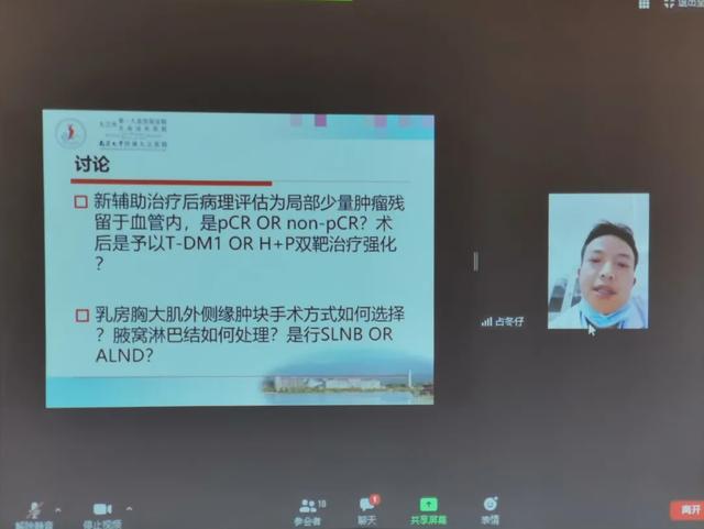本次会议主题紧密结合2020CSCOBC会议精神,围绕中西医乳腺癌靶向治疗最新进展及相关病案进行讨论。整个学术会议分为三部分组成,第一部分由厦门大学附属第一医院吴昕漪教授解读2020CSCOBC指南更新要点、南昌市第三医院李志华教授讲解乳腺癌靶向治疗新时代;第二部分由浙江大学医学院附属第二医院倪超教授讲解三阴性乳腺癌靶点及靶向治疗、广东省中医院刘晓雁教授讲解乳腺癌中医辨证施治;最后部分由九江市第一人民医院、南昌市第三医院医生分别分享HER2阳性新辅助化疗病例和HER2阳性晚期乳腺癌病例。会议内容丰富、知识点精彩、病例分析详细,非常具有启发性,针对乳腺癌治疗领域最新的前沿技术、理念、争议展开了激烈讨论,给大家带来了一场学术盛宴,现场反响剧烈。