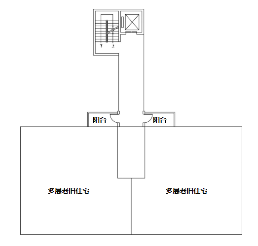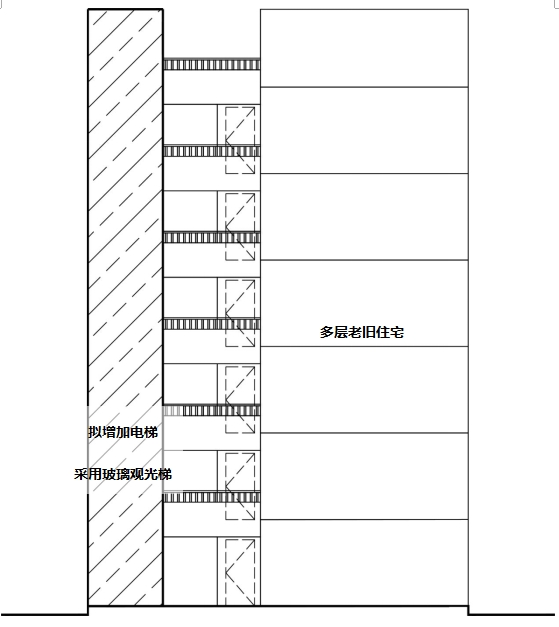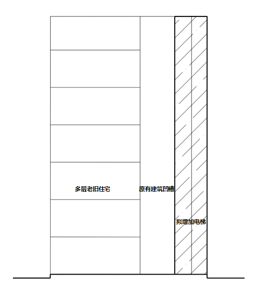 图示5:尽可能利用原有建筑的凹槽区域增加电梯,可以减少遮挡更易实施