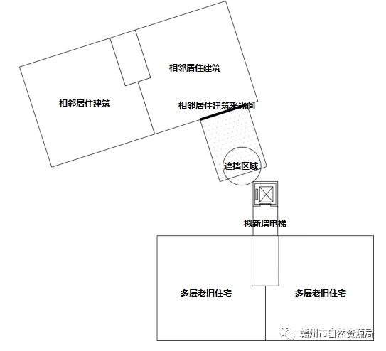 图示1:拟新增电梯需考虑对相邻建筑的影响,不得严重影响相邻建筑的日照