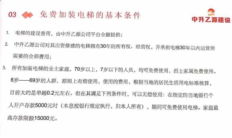 他所在的石城县景福小区可以免费安装电梯,但有偿使用