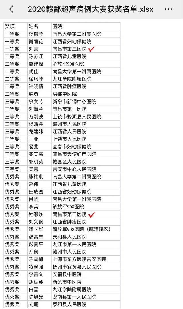 2020年8月22日,由江西省研究型医院学会超声医学分会、江西省抗癌协会超声介入专业委员会、南昌市医学会超声医学专业委员会主办,南昌大学第二附属医院协办的“赣鄱超声”病例大赛在线下线上成功举办。经过前期激烈的角逐,省内37名选手入围比赛,其中不乏来自南昌大学一附院、二附院和省级三甲医院的选手。我院超声科刘蕾、程淑珍在比赛中凭借出色的发挥分别获得一等奖和优秀奖。