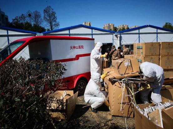 火神山医院对于病毒消杀的流程和标准要求很高,特别是对废弃垃圾和生活垃圾的处理非常谨慎,需要专业的物业公司来做,不能出一点纰漏。正是出于这种高度责任心,金科志愿服务队每天都严格执行任务,在进行消杀及现场环境卫生维护、垃圾清运时,做到责任区域消毒全覆盖,卫生无死角,确保火神山医院安全、高效运转。