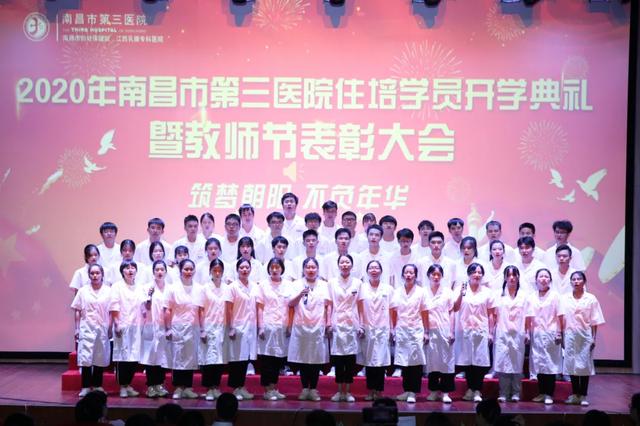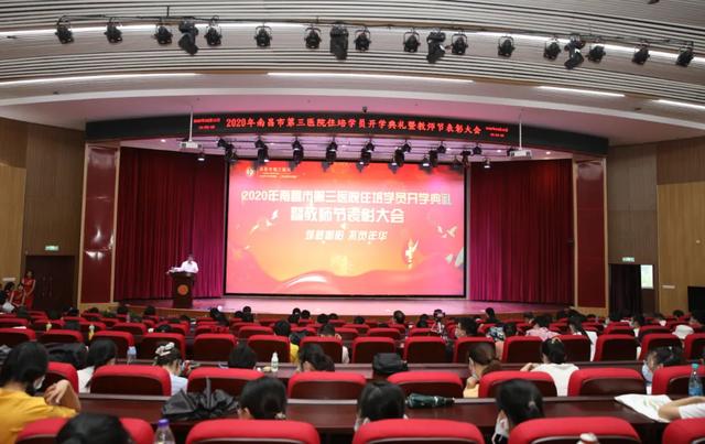 9月10日,南昌市第三医院住培学员开学典礼暨教师节表彰大会在朝阳院区多功能报告厅隆重拉开帷幕,在院院领导党委书记孙太平、副院长吴丽萍、刘圣山、丰亮、纪委书记罗凌青出席会议。医院相关行政职能科室负责人、临床各科室主任、带教老师、住培、全科医生转岗、实习及进修学员300余人参会。会议由科教科龚䶮科长主持。