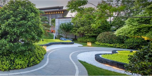 师法东方古典美学,取意“曲、静、和、雅”,营造南北两苑,上下八园十处景观组团,层层进景,尽显东方意境之美。