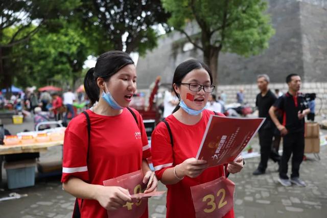 参赛队员在打卡点建春门唱红歌