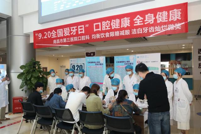 为迎接第32个“全国爱牙日”的到来,9月20日上午,南昌市第三医院口腔科在朝阳院区门诊大厅开展了“爱牙日”义诊宣教活动。