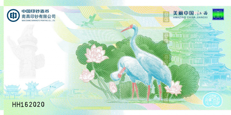 票面设计海昏侯国遗址出土的文物和汉代历史文化元素为核心元素,体现了海昏侯国遗址文物的丰富多样和高度的历史文化艺术价值,体现了我国辉煌、强盛的大汉历史。票面设计还立足江西全省的视角,展现了优美的鄱阳湖自然生态,融入了滕王阁、浔阳楼、八镜台、井冈山等江西历史人文与自然景观代表,概括式的展现了美丽江西的魅力风貌,具有极高的人文价值和设计艺术价值,将成为一张不可多得的钞券艺术珍品。