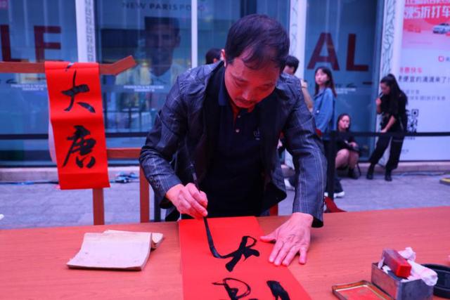 为了更好地展现汉唐风韵的无限魅力,现场设置了丰富的互动体验区:书法、空灵鼓等,引来现场朋友参与其中,场面十分热闹。书法老师挥毫起笔,伴着浓浓墨香,将汉唐古今风韵展现的淋漓尽致。