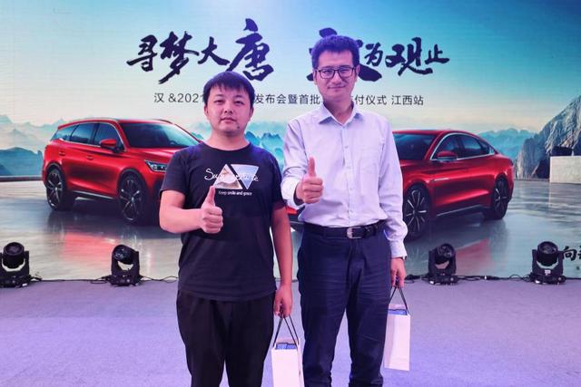 汉和2021款唐不仅是比亚迪在新时代造车的骄傲,更是每一位选择比亚迪的车主朋友们心头的民族自豪。车主代表们上台发表感想后,为比亚迪竖起大拇指点赞!