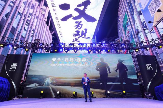 比亚迪汽车销售有限公司华中营销中心副总监欧阳彪先生首先登台致辞,分享了他对智能科技未来新出行的思考,比亚迪汇集"领先技术之大成",致力于把"汉和2021款唐"打造成集"安全、性能、豪华"三大标杆于一体的新能源旗舰车型。