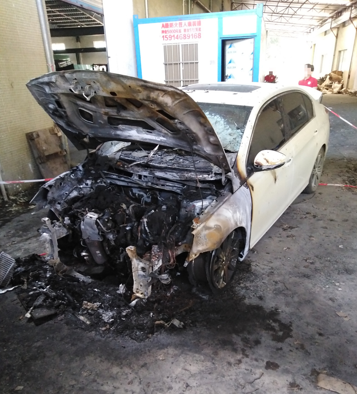 随后,消防人员赶赴现场,迅速将明火扑灭。“汽车停放的位置是一片空阔区域,附近没有什么易燃物,当时看到汽车车头部分烧毁严重,我怀疑可能是汽车自燃导致的火灾。”房女士说道。