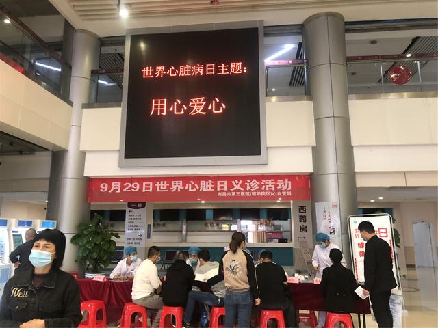 2020年9月29日是第21个"世界心脏日",今年的心脏日主题是"用心爱心"。为引导公众关注心脏健康,提高对心血管疾病的防治意识,远离心血管疾病,南昌市第三医院心血管内三科在朝阳院区门大厅开展世界心脏日义诊宣教活动。旨在呼吁更多人改善生活方式,使更多的人免受心血管疾病的困扰,焕发心脏活力。