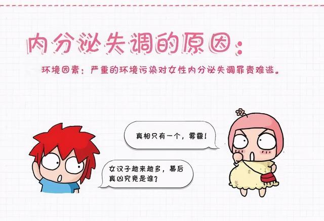 女性在月经期、怀孕期、分娩期等特殊生理过程中,易受到风、寒、暑、湿、热等外邪的侵害,导致气机失调、气血不和,从而导致多种内分泌失调症状。此外,环境污染也会引起女性内分泌失调。空气中的一些化学物质通过各种渠道进入人体后,经过一系列的化学反应,导致内分泌失调,可引起女性月经失调、子宫内膜增生等诸多问题。