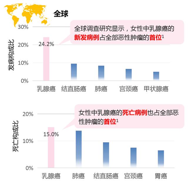 时至今日,癌症早已不是一个陌生话题,全球调查研究显示,女性中乳腺癌的新发病例占全部恶性肿瘤的首位。