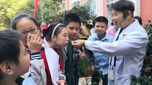 一个多小时的学习时间里,胡贵荣主任带领师生们走进该校百草园,从实地观察到课堂交流,从中草药的名字、形态、生长特性,到中草药的功能主治;从获取诺贝尔医学奖的屠呦呦如何提取青蒿素,到江西中草药的“三子一壳”,将中草药文化一点点渗透进师生们的心田。