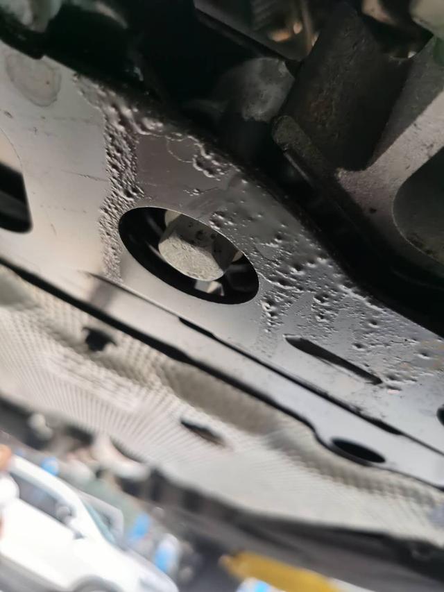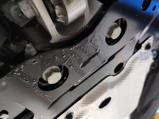 次日,敖先生将汽车开至标特共成4S店进行检查。根据敖先生的说法,维修人员初步检查后向其表示“可能是变速箱漏油”。敖先生提供的车辆底盘的照片显示,车辆底盘部分位置的确存在油渍。