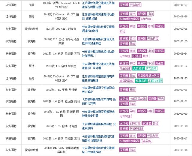 实际上,敖先生的遭遇可能并非个案。在中国汽车质量网、车质网等汽车投诉平台,福特品牌汽车被多位网友投诉存在变速箱漏油、变速箱顿挫等质量问题。