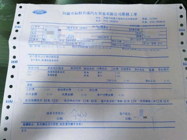 今年9月21日,敖先生在河源市标特共成汽车贸易有限公司(以下简称标特共成4S店)购买了一辆福特锐际2020款汽车,并于9月26日提车。