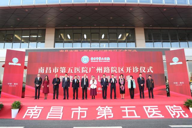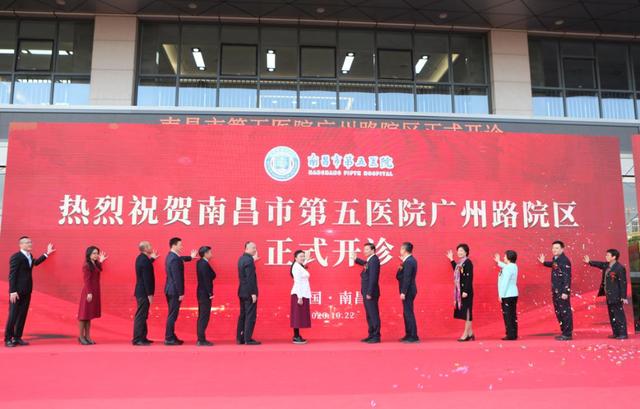 江西消费网讯 金秋十月,清风送爽。10月22日,南昌市第五医院广州路院区全面开诊暨建院47周年隆重举行。南昌市政府副市长龙国英,南昌市青云谱区委书记孙毅,南昌市卫生健康委二级调研员徐国水,青云谱区委副书记、区政府区长吴江辉,青云谱区人大常委会主任魏根金,青云谱区政协主席胥萍,青云谱区委常委、政法委书记林峰,青云谱区人大常委会副主任黄娟,青云谱区人大常委会副主任、区总工会主席万仁枚,青云谱区政府副区长滕作鹏,青云谱区政协副主席、区信访局局长王莉华,南昌市第五医院院长高金庆等领导出席活动,共同为庆典活动触屏揭牌。