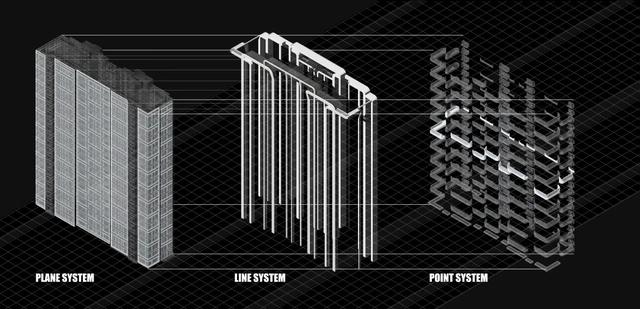 ▽ 错层露台串联,上下连接成为一个舱体,犹如行走在空中的飞船,用打格子的方式将建筑的冗长沉闷的结构打破,赋予了一种漂浮感的表皮肌理。