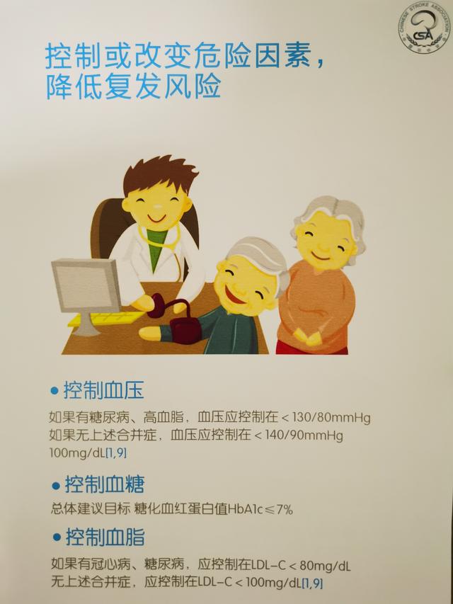 按时服用口服药,定期监测血糖、血压情况,要管住嘴、迈开腿。高危人群定期筛查心脏病、颈动脉斑块等卒中高危因素。